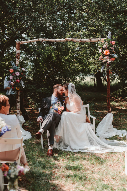 This wedding took place in the garden of the parents of the bride. They had plenty of space to host the wedding for more than 100 guests. When you are planning wedding in your own location, keep in mind that it can be more challenging than the wedding at the wedding venue. But the big plus is that you will get truly unique and personal wedding. Yet the weather didn't disappoint us, however it was quit stormy the day before. This time we did the styling and the flowers, planning and coordination was done by lovely Suzanne, from Geluk Events